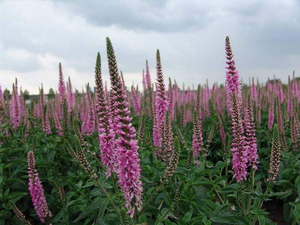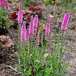 Вероника Royal Pink (Роял Пинк). Многолетнее растение с крепкими прямыми побегами высотой 25-35 см. Диаметр куста 25-35 см. Соцветия — плотные колосовидные кисти из очень мелких розовых цветков. Продолговато-ланцетные листья зелёные или сизовато-зелёные, расположены супротивно или мутовками по всей длине стеблей. Цветет с июня до сентября.