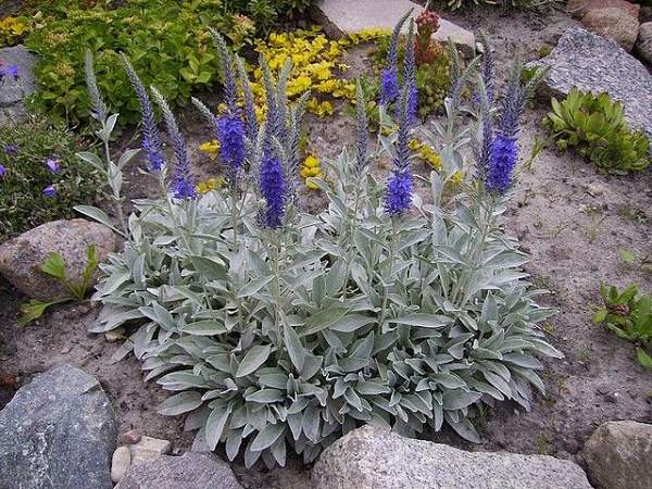 Вероника седая Silberteppich (Зиблертеппих). Травянистое растение, образующие подушковидные кустики. Соцветия многоцветковые, рыхлые, колосовидные. Декоративна до заморозков. Неприхотливое растение. Светолюбивое и влаголюбивое, и в то же время теневыносливое и засухоустойчивое.