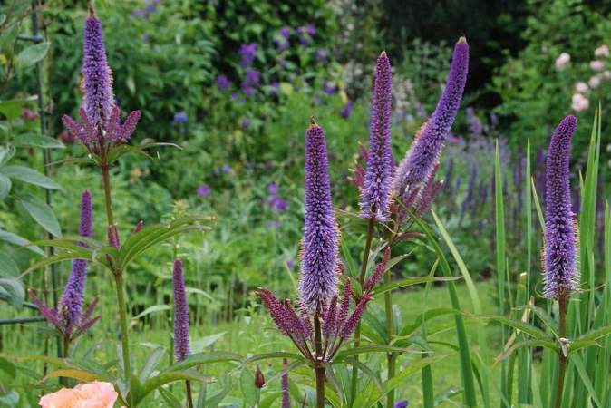 Вероникаструм Cupid (Купид). Относительно невысокий сорт (90 см). Очень хорош еще и тем, что куст растет строго вертикально и не разваливается. Лучше развивается на полном солнце. Готов мириться даже с тяжелым грунтом. Цветение с июля по сентябрь. Прекрасно вписывается в ландшафт натуралистического стиля, своими вертикальными линиями повторяет силуэты декоративных трав.