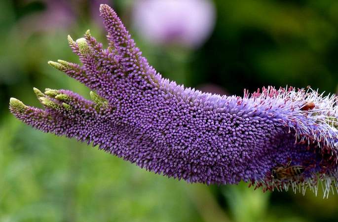 Великолепный мощный вероникаструм. Вначале отдельные колоски соцветия собраны в сросшийся гребень как при фасцинации, затем колоски разделяются в отдельные "стрелы".