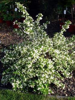 Куст густой, раскидистый. Цветки крупные белоснежные. Высота кустарника до 1,2 м, ширина 1,5 м. Цветет обильно, бутоны цвета слоновой кости. Листья светло-зеленые, опадают поздно. Хорошо смотрится в групповых посадках по 5-7 экземпляров и в сочетании с хвойными растениями. В средней полосе требует пригибания на зиму.