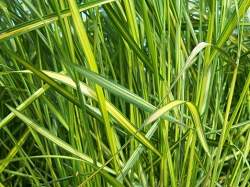 Вейник остроцветковый England (Ингланд). Высота сорта около 120 см. Листья зеленые с желтой полосой по центру. Образует постепенно расползающуюся эффектную кочку. Цветет колосьями пшеничного цвета.