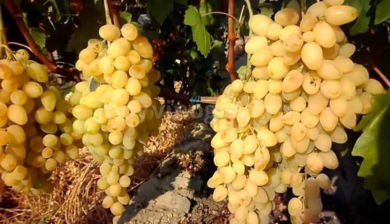Виноградины имеют характерную продолговато-сосковидную форму, очень красивые, их окраска считается белой. Однако полностью созревшие ягоды приобретают в проходящем свете янтарный оттенок и почти идеальную прозрачность. Ягоды очень крупные, массой 10-12 г, длиной до 3,5 см. Кожица средней плотности, нейтральная, при употреблении ягод не ощущается. Мякоть мясистая, упругая, приятного вкуса.