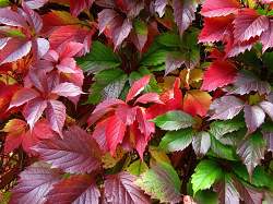 Виноград пятилисточковый Энгельмана. Неприхотливая быстрорастущая лиана для украшения заборов, столбов, стволов деревьев. Листья летом зеленые, осенью желтые и красные.
