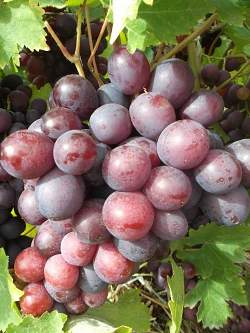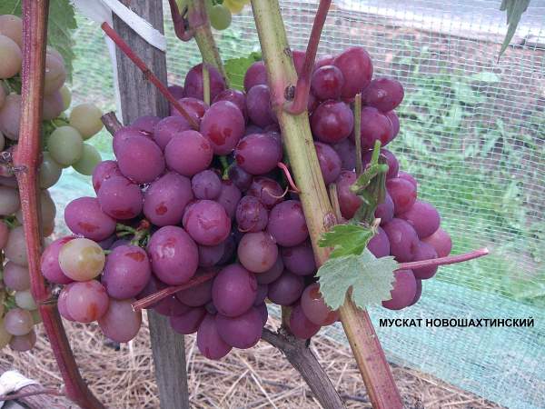Виноград Мускат Новошахтинский. Столовый виноград, является вариацией красных сортов. Сорт созревает рано, цветки опыляются самостоятельно (являются обоеполыми), что гарантирует обильные и постоянные урожаи.