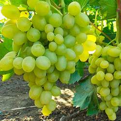 Виноград Супер-Экстра. Является гибридом двух виноградов — Талисмана и Кардинала, при скрещивании которых селекционером Павловским была использована смесь пыльцы. Относится культура к столовым сортам раннего вызревания (урожай формируется за 110 дней). Увесистые грозди полны витаминов и питательных веществ. Вкус ягод — приятный и гармоничный, без изысканных ноток. Процент урожайности — высокий.