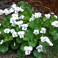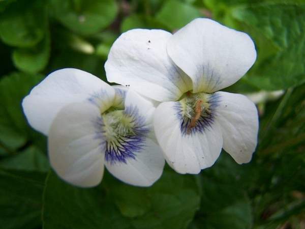 Виола сестринская Albiflora (Альбифлора). Природный вид. Крупные, совершенно белые цветки изящной формы. Вокруг зева на трёх нижних лепестках — узкий сине-фиолетовый узор жилок. Цветет в мае — начале июня. Морозостойка до -40 °С.