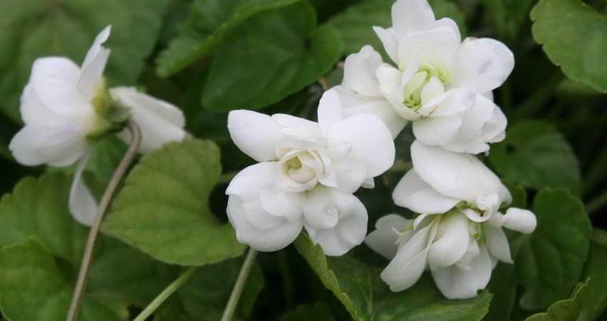 Виола душистая Reine de Blanche (Рин де Бланш). Очень симпатичная! Невысокая, 15 см, цветки душистые, махровые, белые. Размножается быстро, образует полянки. Цветет в мае-июне. Полностью зимостойка, хорошо растет под деревьями.