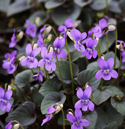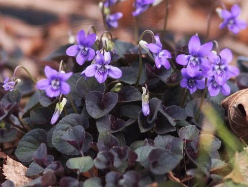 Виола лабрадорская. Многолетние травянистое растение. Листья расположены в очередном порядке или собраны в прикорневую розетку. Цветки с фиолетовыми или лавандовыми лепестками, нижний лепесток у основания с пурпурными жилками, при отцветании цветки становятся красно-пурпурными. Цветоножки во время цветения длиннее листьев.