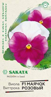 Виола Маячок розовый F1 Виттрока (Анютины глазки). Уникальная серия карликовой крупноцветковой виолы, запоминающаяся яркими, словно мерцающими оттенками. Цветет обильно и продолжительно с мая по сентябрь. Цветки розового оттенка, пероходящего к краю лепестков в более светлые тона и с белоснежным крылом, диаметром 6 см. Растение влаголюбивое, холодостойкое, хорошо растет на солнце и в полутени. Для получения растений, цветущих в год посева, семена высевают на рассаду в феврале-марте. Всходы появляются через 5-7 дней. В открытый грунт рассаду высаживают в конце апреля-начале мая на расстоянии 20 см. Хорошо переносят пересадку в цветущем состоянии. При посеве в открытый грунт в июне-июле, цветение наступает во второй год. Используют для посадки на клумбы, в рабатки, балконные ящики и садовые вазы.