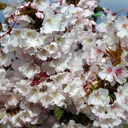 Вишня ниппонская, или сахалинская Brillant (Бриллиант). Встречается на Дальнем Востоке, вполне может расти в Средней полосе. С точки зрения декоративности наиболее привлекательная "сакура" для нашего климата. Листопадный медленнорастущий густой раскидистый невысокий кустарник до 2 (3) м высотой. Габитус овальный или шаровидный. Прямой с раскидистыми ветвями ствол.