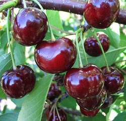 Вишня Владимирская. Это типичная кустовидная вишня. Плоды средних размеров, массой от 2,5 до 3,4 г, плоскоокруглые. Кожица черно-красная, мякоть темно-красная, плотная, волокнистая, сочная, очень хорошего кисловато-сладкого, гармоничного вкуса. Привитые растения вступают в плодоношение на 2-3 год после посадки. По срокам цветения и плодоношения относится к группе средних, от начала цветения до начала созревания проходит 60 дней.