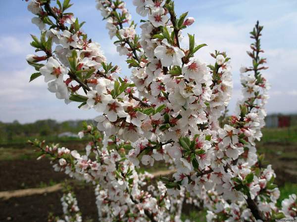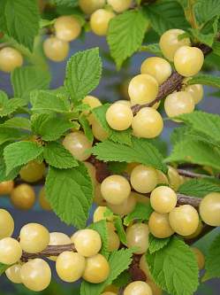 Вишня войлочная Снёвит. Растение красиво как в цвету, так и в плодоношении. Среднего срока созревания. Куст компактный, высотой и шириной до 2 м. Цветки бело-розовые, многочисленные. Плоды имеют необычный для этого вида кремово-желтый цвет. Плоды кисло-сладкого вкуса, созревают в июле. Сорт частично самоплодный.