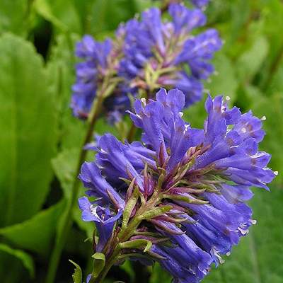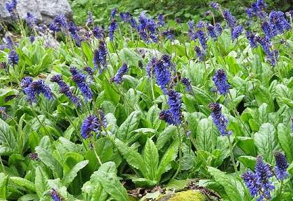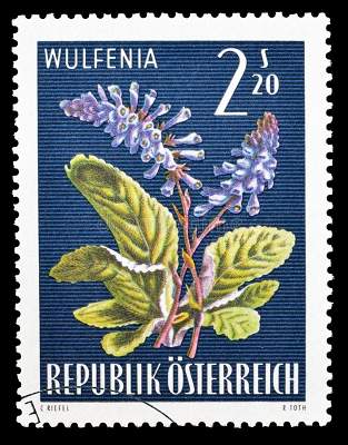 Вульфения каринтская. Родина — горы Центральной Европы. Растет в Альпах и на Балканах на альпийских лугах на высоте 1500-2000 м. Многолетник 20-30 см высотой. Листья вечнозеленые, овальные, с выраженным жилкованием, зубчатые, темно-зеленые, собраны в прикорневые розетки. Цветы 12-15 мм длиной, трубчато-колокольчатой формы, темно- фиолетово- синие, собраны в компактные однобокие кисти. Цветет в начале в июне-июле чуть позже вульфении Балдаса.