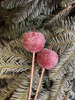 Яблоко в снегу на штекере (красное). Станет прекрасным дополнением к новогоднему декору — для украшения венков, композиций из лапника.