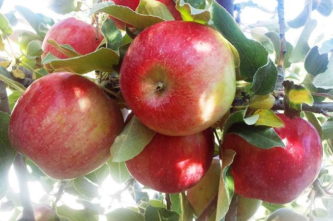 Яблоня Хоней Крисп. Зимнего срока потребления. Дерево среднерослое, со средней скоростью роста. Плоды средней массой 170 г, округло-конические. Основная окраска зеленовато-желтая, покровная — на большей части плода — оранжево-красный румянец с красными штрихами. Мякоть кремовая, нежная, мелкозернистая, сочная. Вкус сладко-кислый со средним ароматом. Дегустационная оценка — 4,5 балла. Плодоношение ежегодное. Транспортабельность плодов хорошая. Зимостойкий. Засухоустойчивость и жаростойкость средняя.