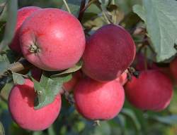 Яблоня карликовая Антоша. Осеннего срока потребления. Дерево, естественный карлик, высота до 2-х метров. Плоды среднего размера (80-90 гр.) округлые или округло-конические, со сплошной покровной ярко красной окраской, переходящей, к вершине плода, в темно-красную. Мякоть белая, мелкозернистая, достаточно сочная, при съеме плотная, десертного вкуса, со своеобразным "южным" ароматом.