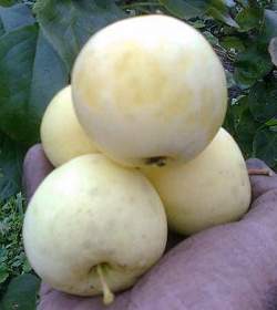 Дерево низкорослое, медленно растущее. Крона средней густоты, обратнопирамидальной формы. Плоды средней массой 45 г, максимальной – 60 г, правильной округлой формы, одномерные, слаборебристые. Основная окраска светло-желтая, покровная отсутствует. Мякоть нежная, беловато-кремовая, мелкозернистая, средней плотности, очень сочная, хорошего кисло-сладкого вкуса (4,2 балла), со средним ароматом.