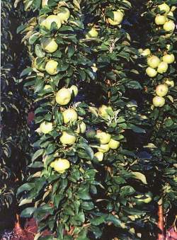 Дерево низкорослое, быстрорастущее. Летний. Крона с колонновидным типом, густая. Плоды средние, массой 110-140 г, одномерные, по форме плоскоокруглые, правильной формы. Окраска светло-желтая, покровная отсутствует. Подкожные точки средние, мало, серые, слабозаметные. Мякоть белая, средней плотности, колющаяся, мелкозернистая, очень сочная. Вкус кисло-сладкий, со средним ароматом. В плодоношение вступает на 3 год.