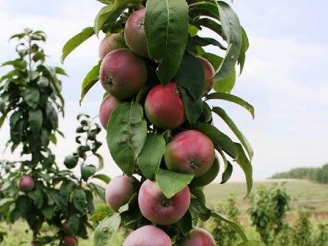 Яблоня колонновидная Конференция. Летний сорт колоновидной яблони, дерево высотой до 3 метров, скороплодно. Плоды имеют насыщенный сладкий вкус без яркого аромата. Вес плодов около 150 гр. Яблоки употребляются в свежем виде. Плоды очень красивые.