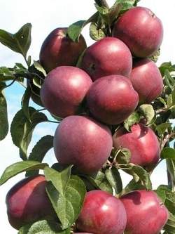Яблоня колонновидная Конференция. Летний сорт колоновидной яблони, дерево высотой до 3 метров, скороплодно. Плоды имеют насыщенный сладкий вкус без яркого аромата. Вес плодов около 150 гр. Яблоки употребляются в свежем виде. Плоды очень красивые.