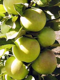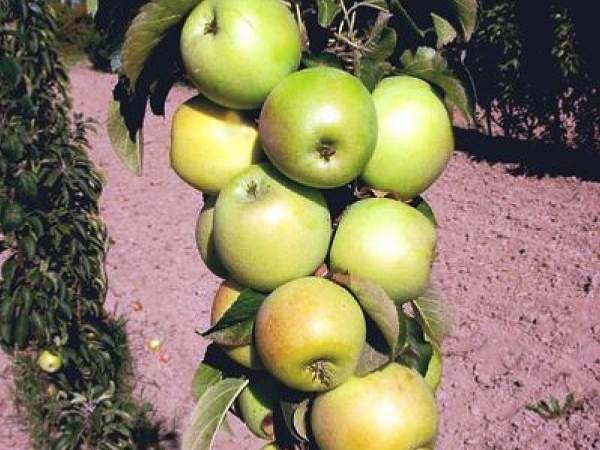 Яблоня колонновидная Малюха. Высота до 180 сантиметров. Относится к карликовым деревьям. Плоды равномерно располагаются практически по всей длине ствола, что заметно облегчает сбор урожая, а также уход за самим деревом. Скороплодный сорт, который дает первый урожай уже на 2 год после посадки.
