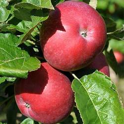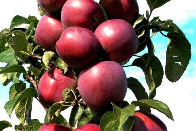 Яблоня колонновидная Созвездие. Данный сорт практически не имеет веток. Плоды темно-красные, средней массой 125-150 г. Мякоть зеленоватая, очень сочная, ароматная. Вкус кисло-сладкий, приятный. Зимостойкий сорт.