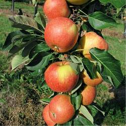 Яблоня колонновидная Восторг. Сорт позднеосенний – раннезимний. Высокоурожайный. Иммунный к парше. Колонна средней силы роста. Плоды средней массой 170 г, от жёлто-зелёных до жёлтых с сильным румянцем красного цвета. Мякоть зеленоватая, нежная, сочная. Вкус кисло-сладкий. Дегустационная оценка 4,3 балла. В холодильнике плоды хранятся до февраля.