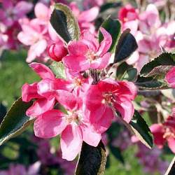 Яблоня красномякотная Сирена. Осеннего срока потребления. Дерево среднерослое, скороплодное. Цветки насыщенного розового цвета. Плоды красно-розовые, округлые, массой 120-150 г. Мякоть ало-розовая с белыми прожилками, сочная, хрустящая, с ягодным привкусом и ароматом, сладкая с легкой кислинкой. Мякоть не приобретает бурый цвет на срезе при контакте с воздухом. Также она сохраняет свой красный цвет и при переработке.