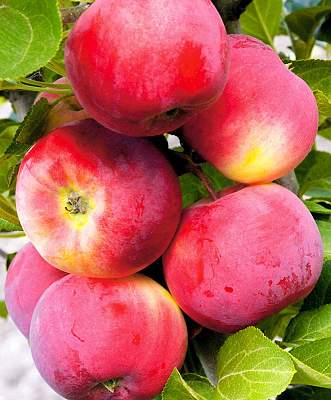 Плоды массой в среднем 80-90 г, одномерные, округлой правильной формы, с гладкой поверхностью. Кожица негрубая, сухая, гладкая, с восковым налетом. Основная окраска густо-кремовая, покровная окраска на большей части поверхности плода оранжево-красная размытая или слегка размыто-полосатая, сильно выраженная.
