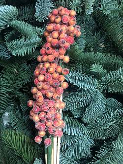 Ягоды в сахаре на штекере (оранжевые). Станут прекрасным дополнением к новогоднему декору — для украшения венков и гирлянд, композиций из лапника.