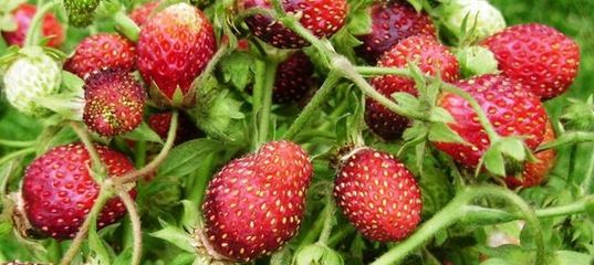 Земклуника Диана. Ягода удлиненно-коническая, темно-красная, очень сладкая с сильным мускатным ароматом и вкусом лесной земляники. Куст компактный, невысокий, многоусый. Не требовательна к почвам, не нуждается в обработках.
