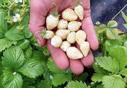 Земляника альпийская Белая Душа. Относится к лучшим сортам белой земляники. Ягоды очень крупные, ароматные и вкусные. Цветет с июня и плодоносит до октября. Растение компактное 20-25 см. Сорт, который очень порадует детей, поскольку сладкие ягоды можно собирать постоянно.