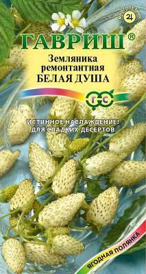 Земляника Белая душа. Очень продуктивный ремонтантный сорт. Формирует компактный кустик высотой 15 см. Цветение и плодоношение наступает рано и продолжается до глубокой осени. Ягоды кремово-белые, конические, при созревании приобретают вкус и аромат ананаса и буквально "тают во рту". Отлично растет в любых условиях, предпочитает легкую полутень. Отличается зимостойкостью, устойчивостью к засухе, заболеваниям. Посев земляники следует производить в марте-апреле. Семена смешивают с песком и равномерно распределяют по увлажненной ровной поверхности. Всходы появляются в течение 30 дней. В фазе 1-2 настоящих листьев пикируют в горшочки. После появления 6 настоящих листьев высаживают в грунт с расстоянием между рядами 25-30 см, между растениями 15-20 см. Предпочитает солнечные места и полутень. Сбор урожая начинают с июня. Сорт можно использовать для оформления декоративных бордюров.
