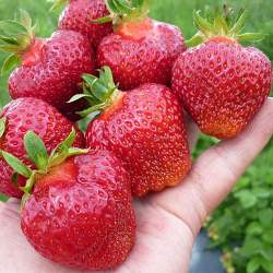 Земляника Фейт. Поздний высокоурожайный сорт. Куст большой, открытый. Период цветения довольно продолжительный, что обеспечивает длительный сбор ягод. Ягоды конической формы, вкусные, ярко-красного цвета, напоминают сорт Соната. Сорт устойчив к мучнистой росе и серой гнили.