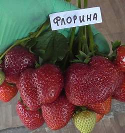 Земляника Флорина (Florina). Сорт особенно славится у дачников в последнее время. Многие отмечают удивительно крупные размеры плодов, напоминающие по свойствам сорт Гигантелла. Максимальный зафиксированный вес одного плода Флорины составляет около 80 грамм. Плоды отличаются конусовидной формой, ярким окрасом, насыщенным ароматом и превосходным вкусом.