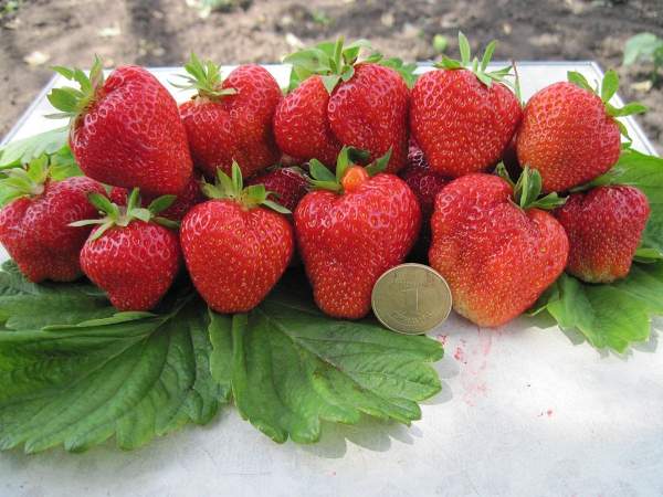 Земляника садовая Кимберли, полное название которой "Вима Кимберли", имеет голландское происхождение. Она была получена от скрещивания двух не менее популярных десертных сортов Chandler и Gorella. Описание сорта клубники, пожалуй, стоит начать с того, что это крупноплодная ягода — ее средний вес достигает 50 г. Плоды одномерные, конусовидной формы, блестящие, кожура и мякоть насыщенного красного цвета.