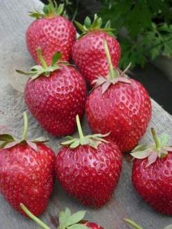 Земляника садовая Корона. Один из самых высокоурожайных сортов. Результат скрещивания сортов Tamella (Тамелла) и Induka (Индука). Форма ягод правильной конической формы, размером выше среднего. Ягоды массой до 25 г мясистые, красно-алого цвета, с сочной ароматной мякотью приятного сладкого вкуса.