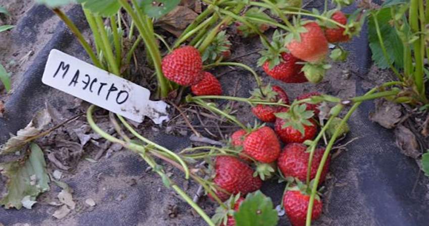 Земляника Маэстро. Ремонтантный сорт. Ягоды до 50 г, конической формы, красного цвета, сладкие с отличными вкусовыми качествами. Сорт высокоустойчив к болезням и вредителям. Высокоурожайный сорт.