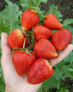 Ягоды первого сбора крупные (до 32 г), тупоконические, без шейки, с глубокими бороздками, последующие ягоды мельче. Мякоть красная, плотная, приятного кисло-сладкого вкуса. Сорт среднего срока созревания. Урожайность 100-120 кг с сотки. Растения обладают хорошей зимостойкостью, средней засухоустойчивостью, имеют полевую устойчивость к вертициллезному увяданию, слабо поражаются мучнистой росой, средне — серой гнилью ягод.