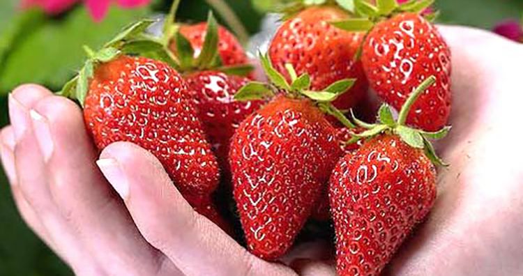 Земляника Руби Энн. Ремонтантный, цветки красные, ягоды конические, сладкие.