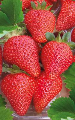 Земляника Скала. Новейший поздний сорт клубники итальянской селекции. Ягоды очень крупные 40-45 г, прекрасного вкуса с сильным ароматом, ярко красного цвета с блеском. Урожайность и устойчивость к болезням высокие.
