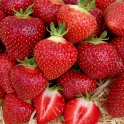 Земляника садовая Снежана. Новый раннеспелый крупноплодный (до 40-45 г) урожайный сорт (1,5 кг/м²). Куст мощный, хорошо облиственный. Листья средней величины, верхние ярко-зеленого цвета, нижние более темные, глянцевые, средней морщинистости. Цветоносы ниже уровня листьев.