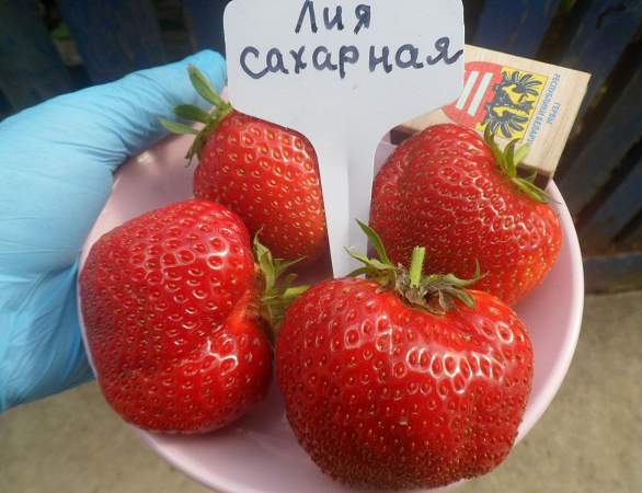 Земляника Sugar Lia (Шуга Лия). Ранняя. Крупные, красивые и блестящие ягоды тают во рту. Вкус незабываемый! Вес ягод от 40 г до 60 г. Мякоть сочная, по вкусу очень сладкая, ощущается яркий фруктово-земляничный букет. Плоды крепкие, при перевозке не текут.