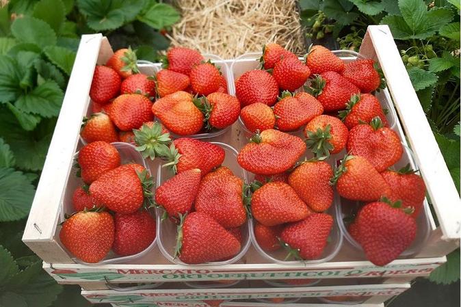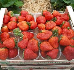 Земляника Талия. Высокоурожайный поздний сорт. Куст компактный, средней силы роста. Ягоды конической формы, средним весом 30 г, ярко-красного цвета с красной мякотью. Форма и цвет одинаковы на протяжении всего периода сбора. Ягоды плотные. Сорт можно выращивать в открытом и защищенном грунте. Урожайность достигает более 1 кг с куста. Устойчив к наиболее распространенным болезням клубники.