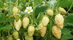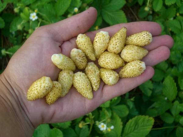 Земляника Жёлтое Чудо. По вкусу и аромату превосходит красноплодные сорта. Обильно плодоносит до заморозков. Ягоды весом 4-6 г. ароматные, очень сладкие, без внутренних полостей. Зрелые плоды красивого кремово-желтого цвета. Не склевываются птицами. Сбор урожая с начала лета и до поздней осени.