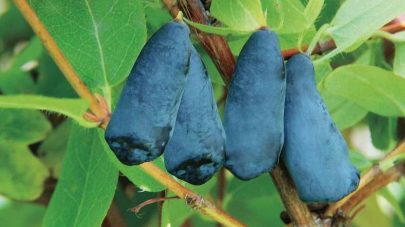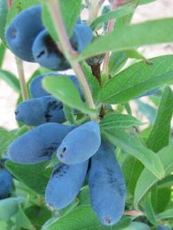 Жимолость Антошка. Раннеспелый сорт жимолости отечественной селекции. Кусты высотой до 1,5 м и такой же шириной. Плоды очень крупные, масса 1 плода до 2 г, в длину до 2,5 -3 см, удлинённо-овальной формы, фиолетово — синей окраски, с восковым налётом. Кожица толстая. Плодоножка средней длины. Вкус сладко-кислый, с ароматом. Высокоурожайный сорт, за сезон с одного куста собирают в среднем до 2,5 кг ягод.