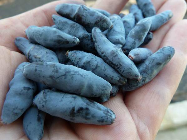 Плоды крупные (средняя масса 1,5, максимальная — 2,1 г), сочные удлинённо-овальной формы с округлённой верхушкой, сильным восковым налётом. Вкус плодов кисло-сладкий, освежающий, со слабым ароматом. Кожица плодов средняя, транспортабельность хорошая. Созревание средне-позднее. Прикрепление к ветвям среднее, осыпаемости нет, но при сборе отделяются легко. Урожайность в среднем 2,3, максимальная — 4,5 кг.