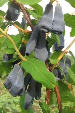 Ягоды очень крупные, неодномерные (массой от 1,8 до 2,5 г) удлинённо-грушевидной с валиком у верхушки и характерно изогнутой в сторону у основания формы (напоминают перевёрнутую запятую). Тёмно-фиолетовые с сильным восковым налётом, отчего кажутся сизыми. Вкус десертный, кисло-сладкий, ягоды хороши при заморозке. Созревание среднепозднее растянутое. С куста собирается от 3,1 до 3,5 кг.