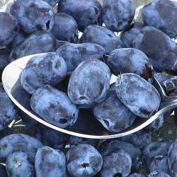 Новый, самый крупноплодный сорт жимолости канадской селекции. Срок созревания поздний. Куст открытый с приподнятыми ветвями, что удобно для сбора ягод. Вырастает до 150 см. Крона мощная, округлая. Ягоды очень крупные, средней массой 3,5-4,2 г, овальной бочонкообразной формы, длиной около 3 см.